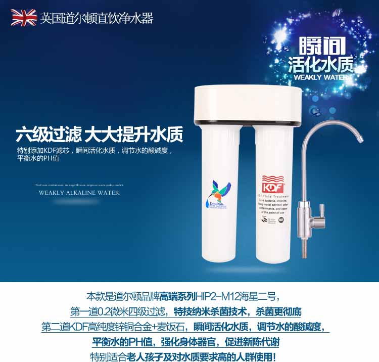 如今的道尔顿净水器已经远销全世界153个地区,并取得了134个*的免检。是世界上*通过世界卫生组织(WHO)饮食用水标准的净水器!道尔顿品牌净水器多年来全球销量保持前三、拥有无数的知名高端客户群、获得的奖项多不胜数……这是对皇家道尔顿品牌品质*的证明;是消费者选择道尔顿品牌、信赖道尔顿品牌的重要依据;同时也是对道尔顿人辛苦科研和保质保量生产的*肯定。